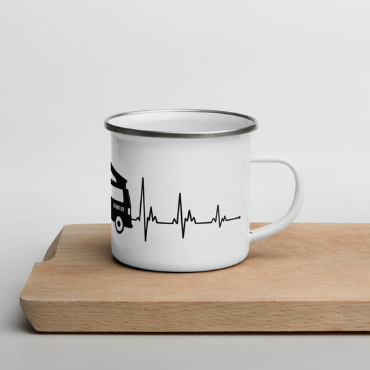 Vanwear Van Life Enamel Travel Mug - VW Pop Top Heartbeat