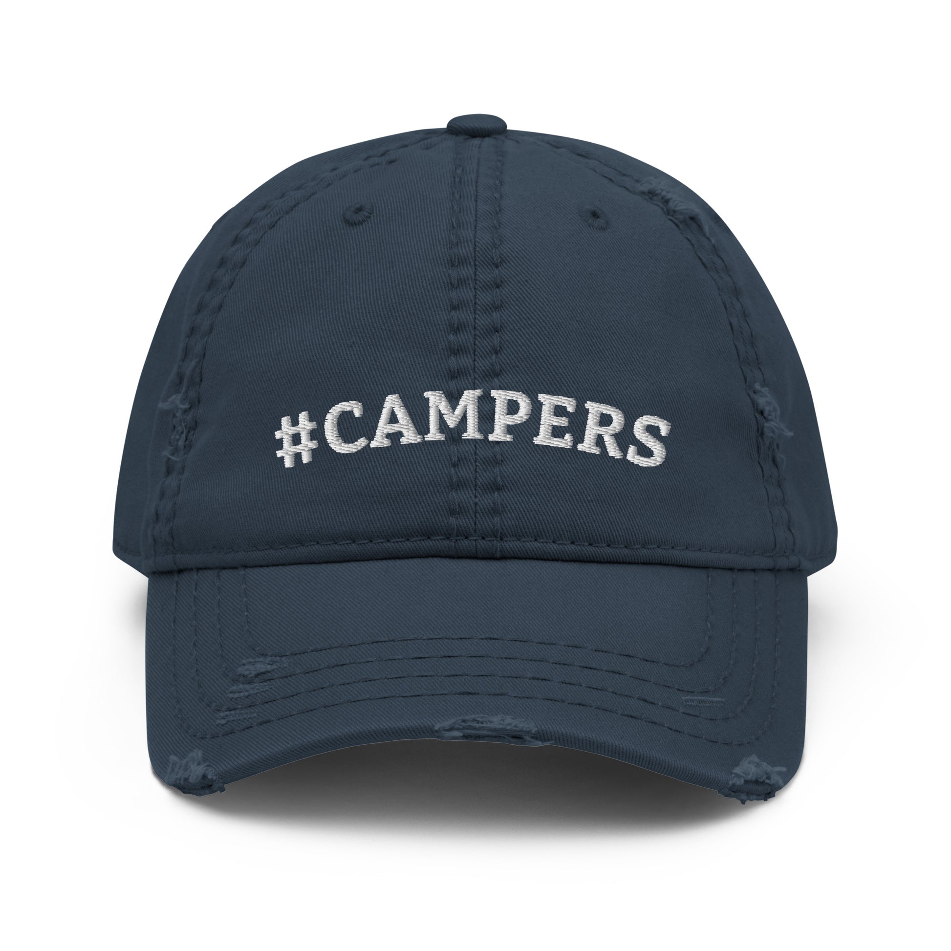 Up your headwear game with this unique and stylish #CAMPERS cap. It's a great quality hat featuring a fully embroidered emblem. Finished with a slightly 'distressed' brim and crown fabric, it’ll add just the right amount of edge to your look.