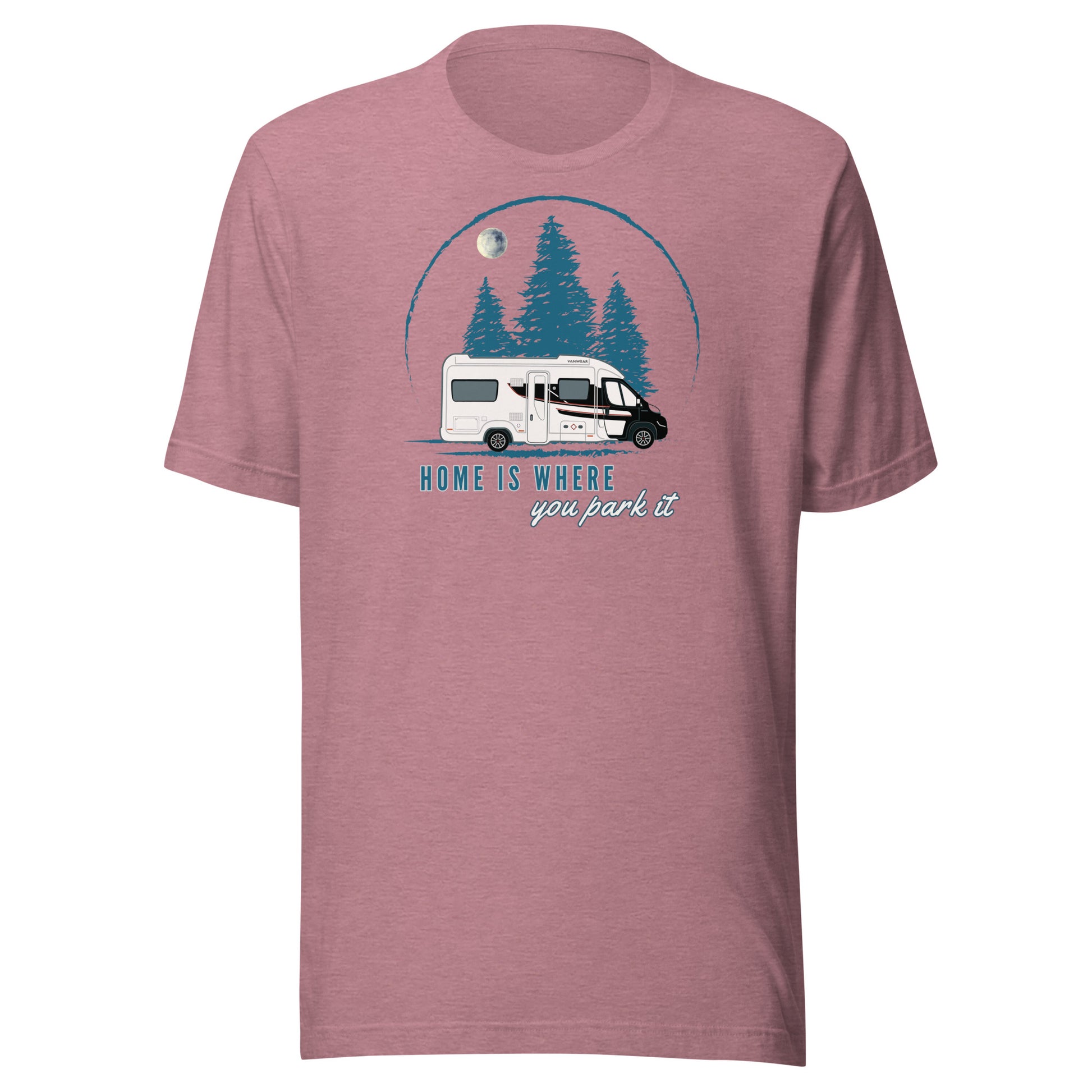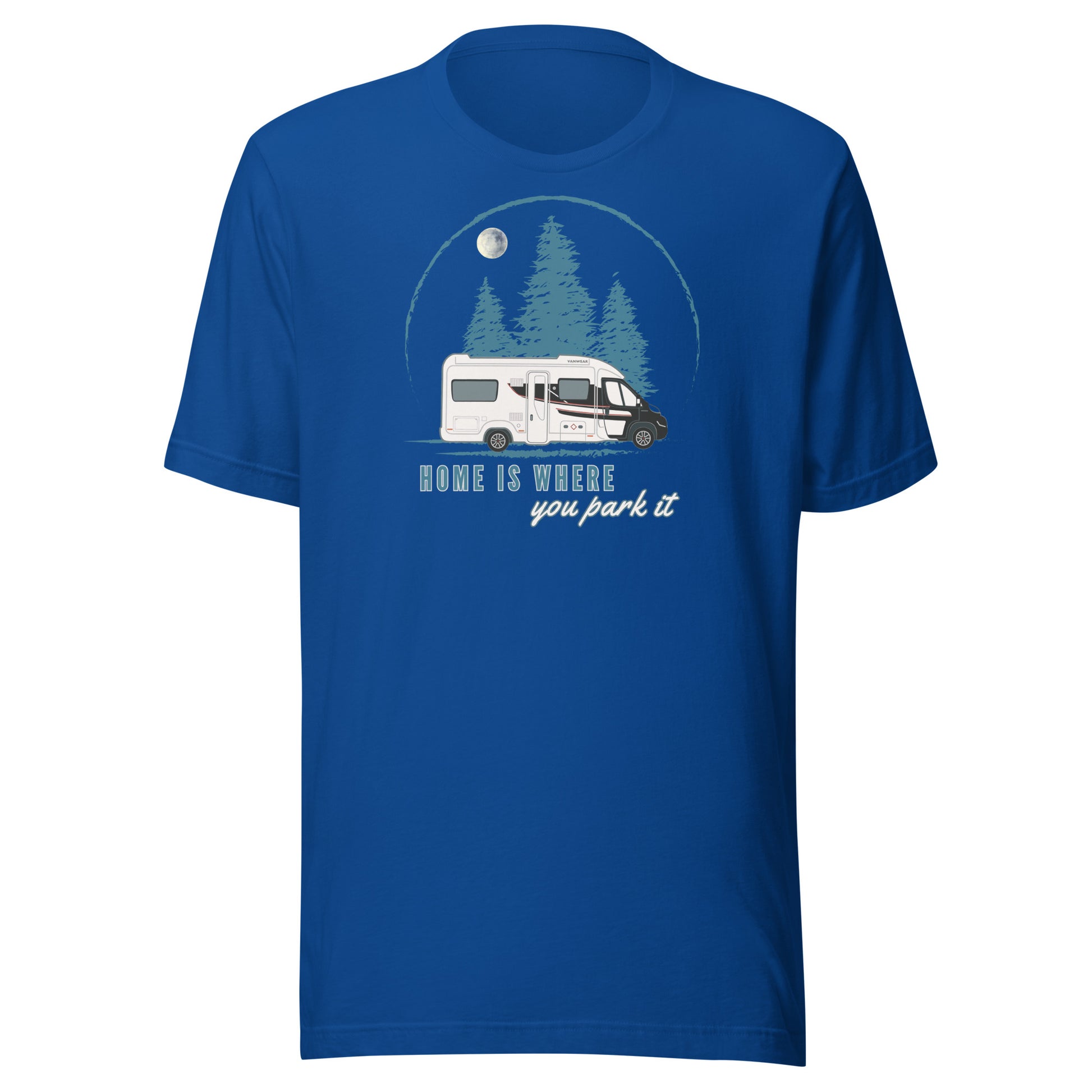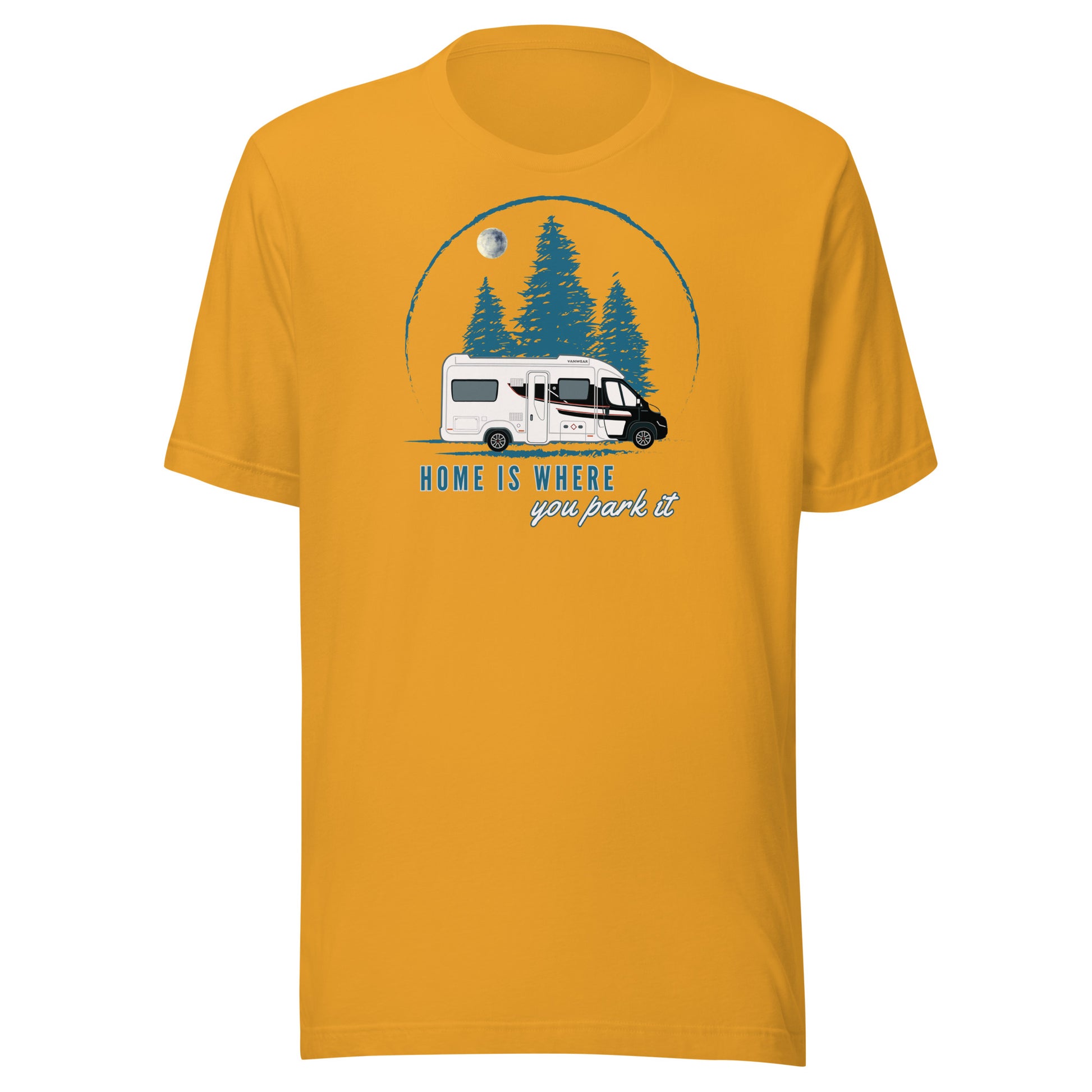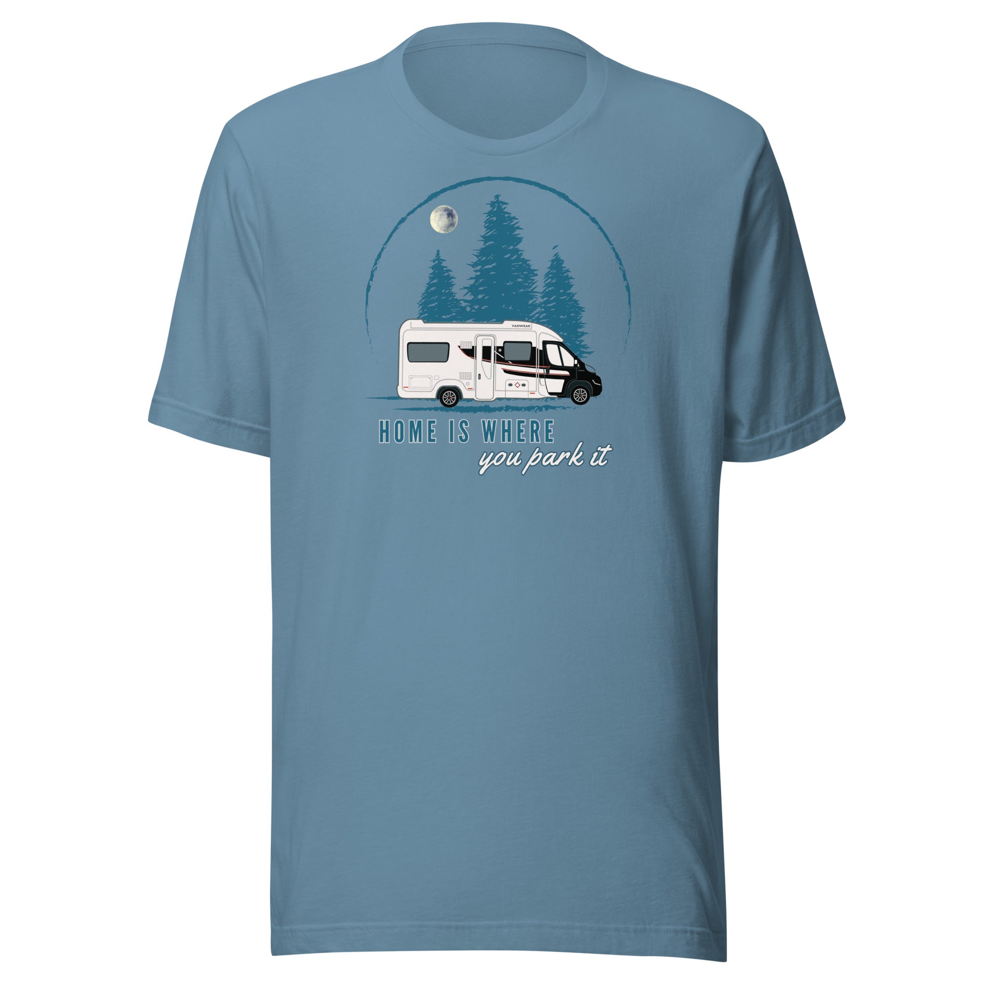 Stylish Vanwear Tee from the Motorhome collection featuring a popular Motorhome style and another eye-catching design that's dedicated to outdoor van adventures. 'Home is Where You Park It' is a well-used phrase in the Van Life world and is inspiring a whole new Vanwear range!
