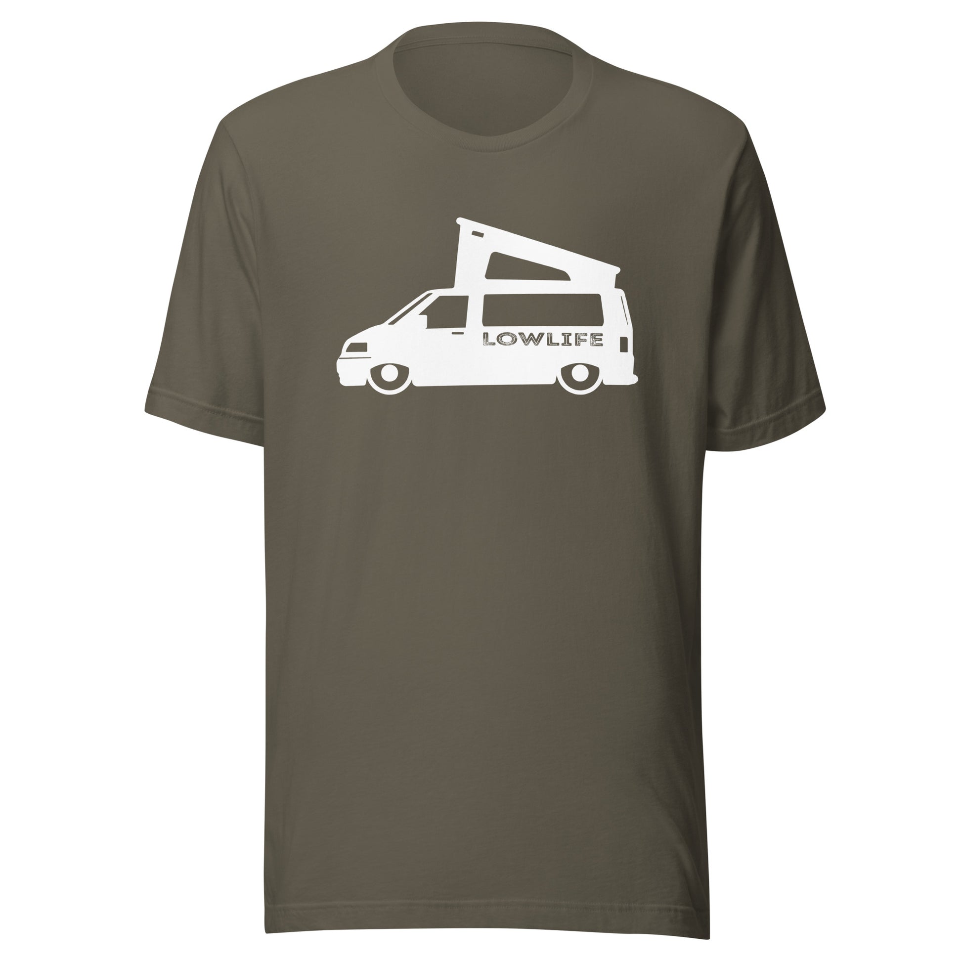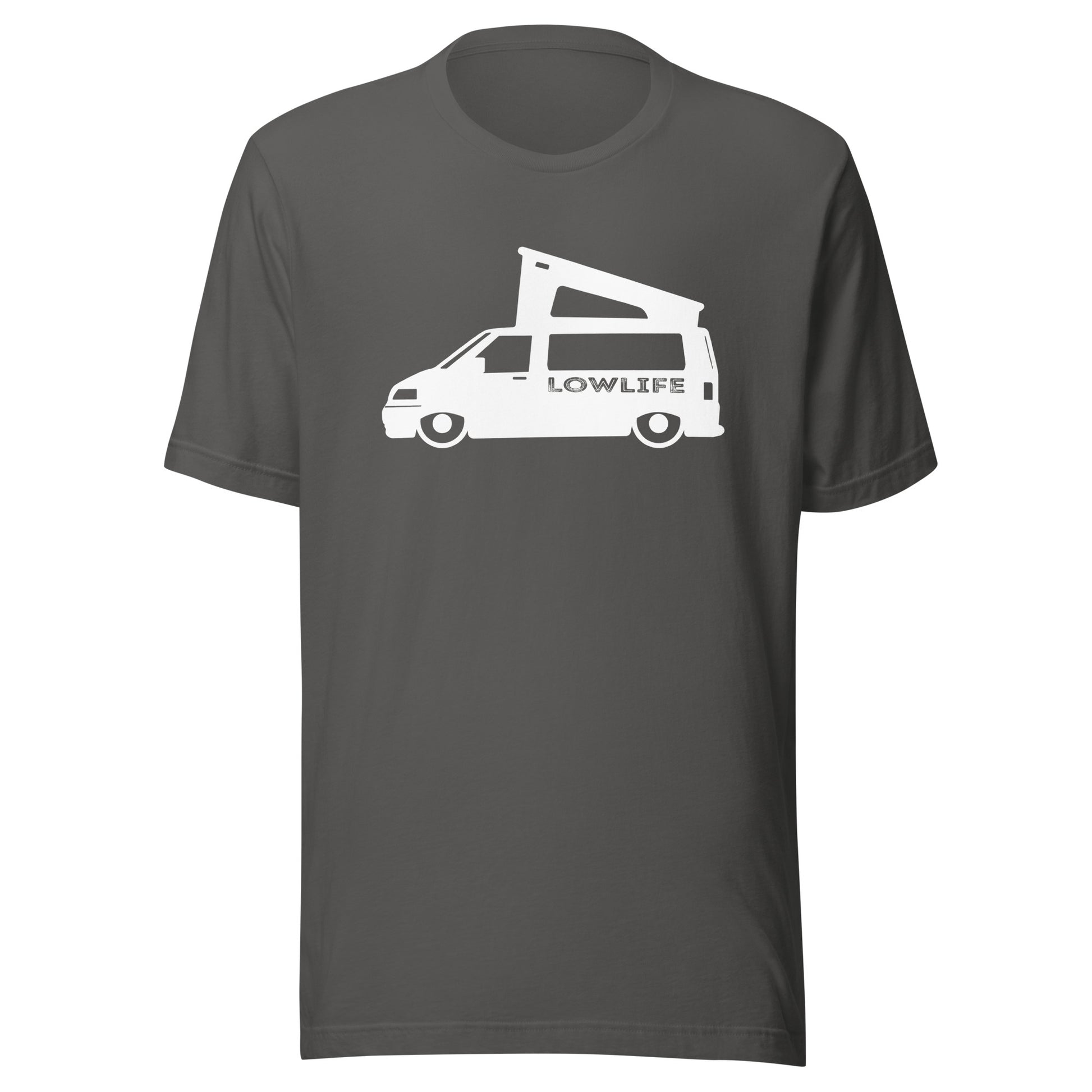 Vanwear Lowered Volkswagen VW T5 Campervan Unisex T-Shirt - Low Life (White)