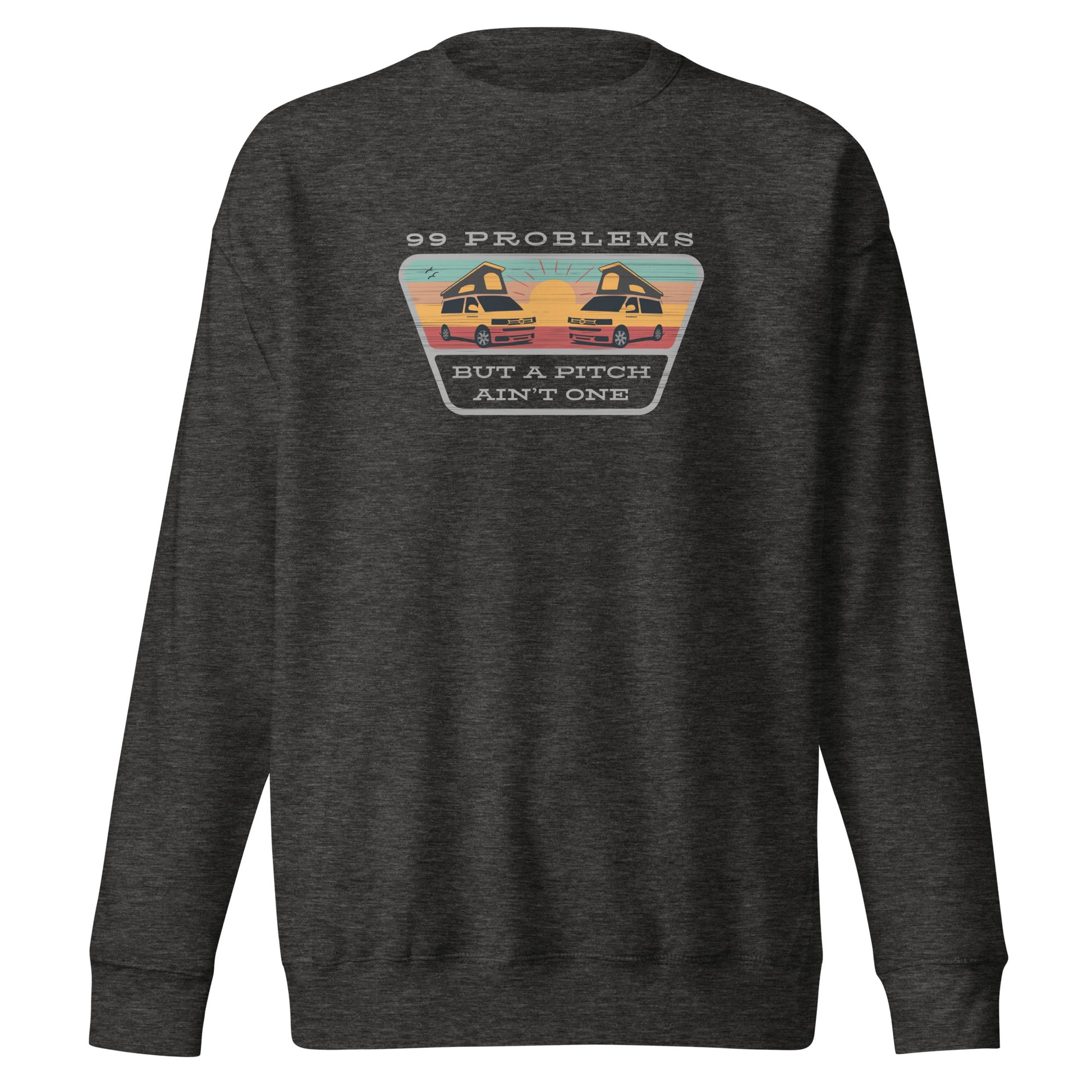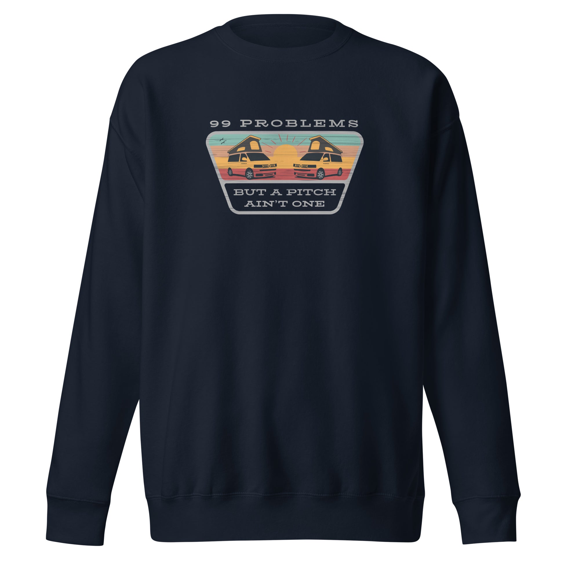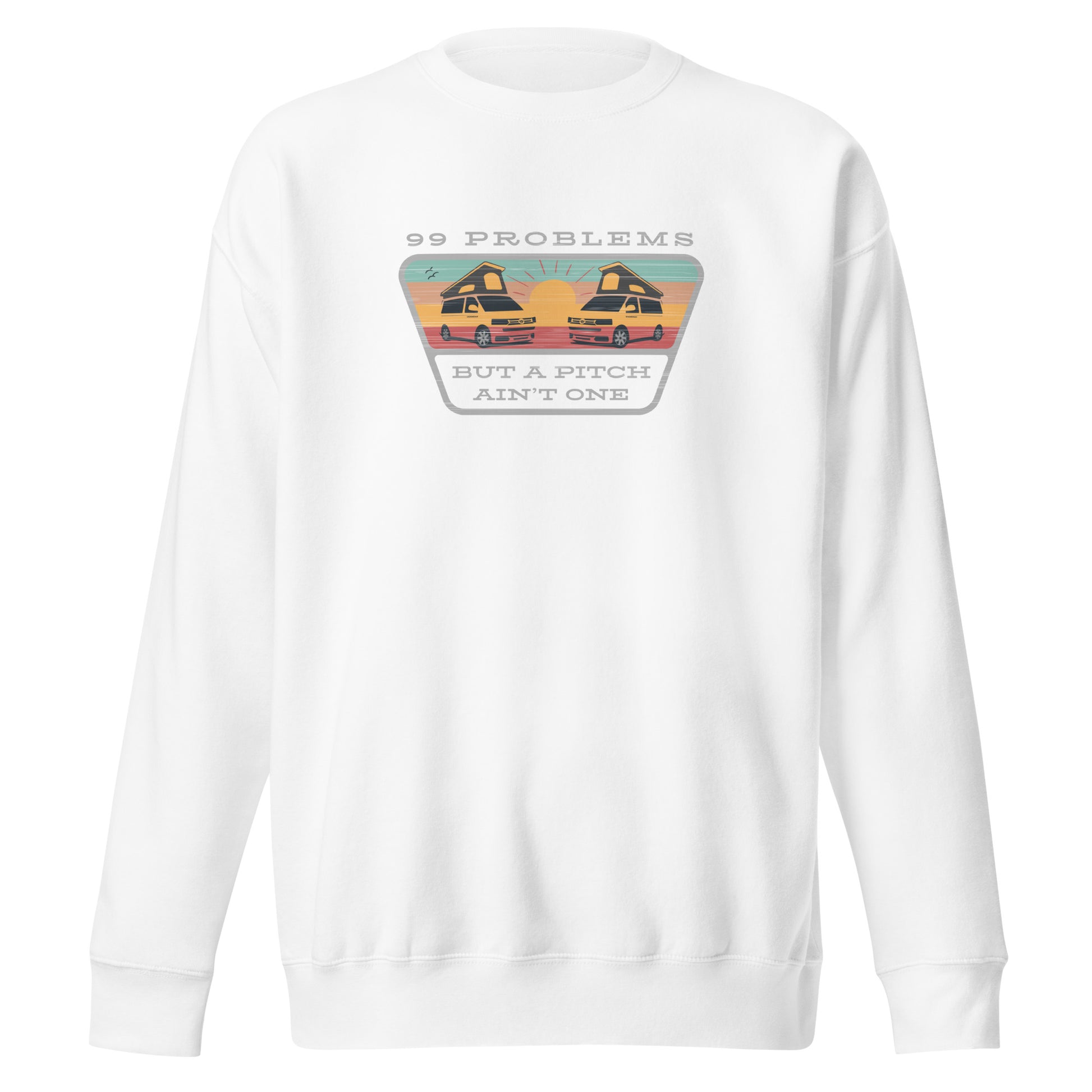 Stylish Vanwear sweatshirt from the 99 Problems collection, designed with a linear aged-look effect and featuring two campers mirrored in the sunset. Nice!